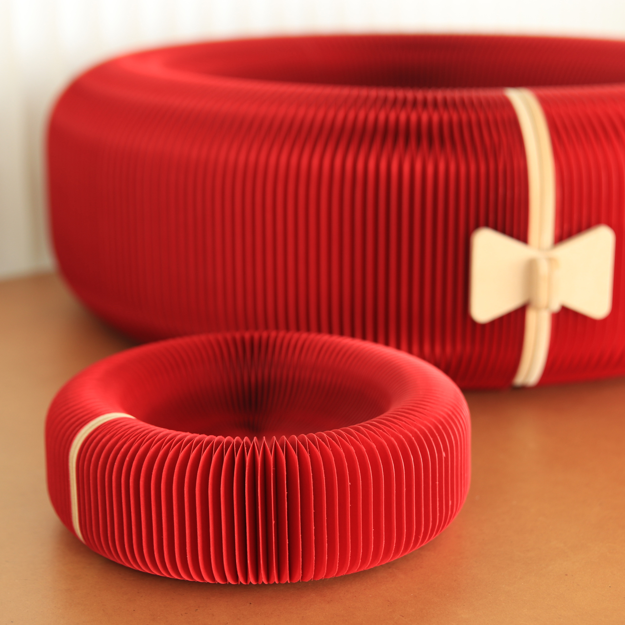 將原本支撐貓孩重量的強韌結構的柿餅貓床,